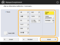 2 | Sélectionnez le format du papier. ![]() ![]() Pour plus d'informations sur les formats de papier affichés lorsque vous appuyez sur <Autre format>, consultez la section Papier disponible. |