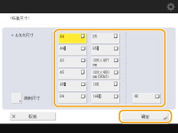1 | 按<自定义尺寸>。 ![]() 您可以将纸张尺寸指定为 <任意尺寸>,这样就不必再输入纸张尺寸设置。在添加未知尺寸的纸张用于复印时或纸张尺寸已经在打印机驱动程序中注册时指定 <任意尺寸>。 |
