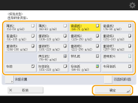 1 | 按<信封>。 信封纸张类型不可从 <纸张类型> 的详情屏幕中选择。如需选取信封纸张类型,请在 <注册常用纸张(多功能托盘)> 中注册纸张类型,然后在步骤 2 中按 <常用纸张> ,即已注册纸张类型的按钮 <良好>。注册多功能托盘的常用纸张尺寸和类型 |
