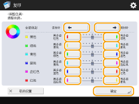 按钮用于 <全部色彩>。要分别设置每种色彩,请在每种色彩的左右端使用这些按钮。调整完成之后,请按<确定>。