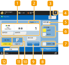 显示设置状态,如用于打印的纸张尺寸和打印份数。确保确认相应设置以便正确打印。要更改设置,按显示部分下方的按钮。要更改打印份数,使用数字键输入份数。