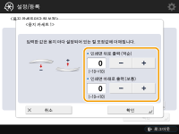 입력된 값은 각 용지에 대해 설정된 보정값에 추가됩니다.