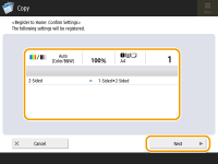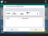 If you select <On> for both <Display Confirmation Screen When Recalling> and <Start Operation for Recall (Operation starts when button is pressed.)>, copying starts after you select <Yes> on the confirmation screen.