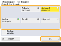 Si le type de papier chargé ne s'affiche pas, appuyez sur <Réglages détaillés> pour le sélectionner dans la liste.
