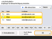 Wählen Sie eine E-Mail-Adresse aus dem Adressbuch aus, und drücken Sie <OK>.