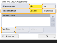 Setzen Sie <Filter verwenden> auf <Ein>, wählen Sie <Standardrichtlinie> aus, drücken Sie dann <Speichern>.