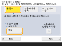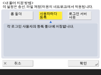 <확인>을 누릅니다. 각 사용자마다 개인 폴더의 위치를 지정할 수 있습니다.1 | <홈 폴더> <설정>을 누릅니다.![]() |