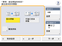 按下 <原稿尺寸> 中的 <變更>,並選擇原稿尺寸。如果您選擇 <自動>,則會依照原稿尺寸自動選擇小冊子尺寸。