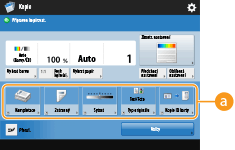 Ukládání do <Oblíbená nastavení>Do <Oblíbená nastavení> můžete ukládat často používané postupy pro kopírování a také často zadávaná místa určení a nastavení pro skenování. Další informace viz Uložení kombinace často používaných funkcí.