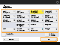 Kuvertpapirformatet kan ikke vælge på detaljeskærmbilledet for <Papirtype>. Hvis du vil vælge kuvertpapirtypen, skal du registrere papirtypen i <Registrér Foretrukket papir (Universalbakke)> og derefter trykke på <Foretrukket papir> i trin 2