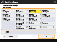 Vælg den papirkilde, hvori det ikke-registrerede papir i standardformat er lagt, og tryk på <Ikke-genkendel. standardformat>.