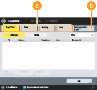 Når du trykker på  (Status Monitor), vises skærmen <Status Monitor>. På dette skærmbillede kan du tjekke printnings- og overførselsstatussen samt den resterende toner- og hukommelsesmængde.