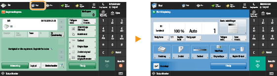 Du kan oprette en genvejsknap til funktioner på <Hjem>-skærmen. Brug denne knap til adgang til en anden funktion uden at gå tilbage til <Hjem>-skærmen. For at oprette en genvej skal du logge ind med administratorrettigheder.