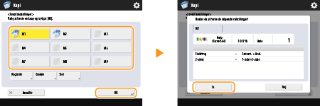 Tryk på <Kopi>, og angiv de indstillinger, du vil registrere.