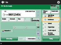 Fax/I-fax Sendejob: <Kvalitetsprioritering> (<Prioritet af hastighed/billedkvalitet for S/H-scanning>)Når flere telefonlinjer er indstilletDu kan vælge telefonlinjen, der skal bruges til afsendelse af faxbeskeder, ved at trykke på <Tilvalg>