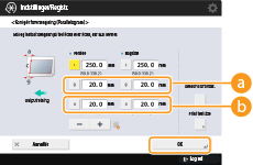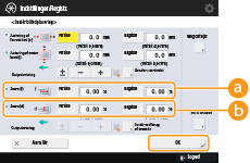 tryk på <OK>.Med følgende tre numeriske værdier justeres en enhed automatisk, så det forvrængede printområde muligvis bliver rettet.