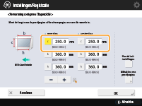 Voer op het scherm <Vervor. corrig. (Trapezoïde)> "250,0" in voor <c> voor zowel de voor- als achterzijde.