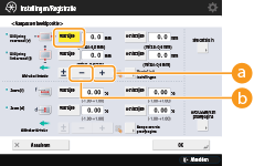 Voer op het scherm <Onj. uitlijning afb. corrigeren> de werkelijke waarden voor <i> en <j> in voor de voorzijde en de achterzijde
