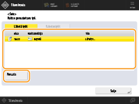 (Seis) käyttöpaneelissa, kun lähetys-/faksityötä käsitellään ja <Faksi>- / <Skannaa ja lähetä> -näyttö on esillä, esiin tulee ponnahdusikkuna, joka peruuttaa meneillään olevan työn. Kun useita töitä on kesken, voit määrittää, mikä niistä peruutetaan: viimeksi tehty vai työ, jota ollaan parhaillaan lähettämässä. (<Peruutettava työ kun Seis painetaan>)Jos käyttöpaneelin