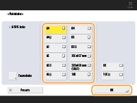 painike, johon kirjekuorityyppi on tallennettu <OK>. Monitoimitason usein käytetyn paperikoon ja -tyypin tallentaminen |