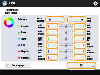para <Todas cores>. Para programar cada cor separadamente, utilize os botões à esquerda e à direita de cada cor. Quando o ajuste estiver concluído, carregue em <OK>.