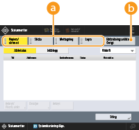 Tryck på  (Inställningar/Registrering) för att visa skärmbilden <Inställningar/Registrering>. Tryck på den här knappen först för att göra förändringar för varje inställning, som t.ex. pappersinställningar, visningsinställningar och nätverksinställningar. På den här skärmbilden kan du också registrera mottagare, som t.ex. e-postadresser och faxnummer.