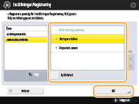 Om <Snabbknapp Inst./Registr.> inte visas på skärmen <Hem> ska du trycka på  <Inställningar för hemadministration> <Begränsa funktionsdisplay>  <Ställ in> och ställa in att <Snabbknapp Inst./Registr.> ska visas.