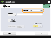 Jobbtyp: Fax (minnessändning) eller Scanna och skicka (fax/I-fax)