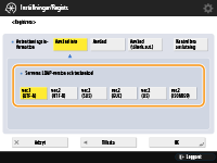 I miljöer där en LDAP-server används kan du söka efter faxnummer och e-postadresser som angetts som mottagare från maskinen och som är registrerade i maskinens adressbok.