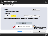 Välj tidpunkt för att visa inloggningsskärmen. Om du väljer <Visa när funkt. valts>, tryck på <Funktioner> och <Färgutskrift/-kopiering> för att välja funktionen som inloggningsskärmen ska visas för och tryck på <OK>. Välj också det inställningsalternativ på skärmen <Inställningar/Registrering> som inloggningsskärmen ska visas för.