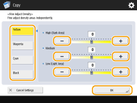 Adjust the density of yellow, magenta, cyan, and black separately.