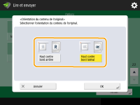 ![]() | Vous pouvez spécifier l'orientation d'un document original placé sur la vitre d'exposition ou dans le chargeur dans le sens horizontal ou vertical. |