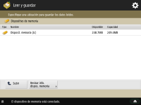 Pantalla de selección de almacenamiento