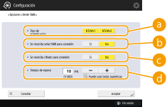 <Tiempo de espera>Configure el tiempo hasta que responda el destino de conexión SMB.