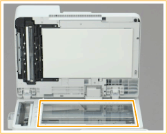 Pase un paño a la parte trasera del alimentador y del cristal de copia.