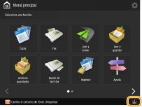 Cuando queda poco tóner o está a punto de agotarse, aparecerá un mensaje indicándole que prepare un nuevo cartucho de tóner o que proceda a su sustitución. Prepare un nuevo cartucho de tóner o proceda a la sustitución del cartucho de tóner actual de acuerdo con el mensaje.