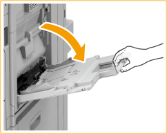 Retire los Accesorios del alimentador A4 y póngalos en el espacio de almacenamiento correspondiente. Al volver a cargar papel de la serie A/B, recuerde colocar los Accesorios del alimentador A4 en posición de servicio.