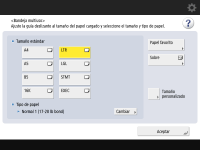 Si ha cambiado la serie de tamaño del papel para cargar en el casete, especifique la nueva serie de tamaño en <Grupo tamaños papel para reconocim. aut.>. <Opciones de papel>