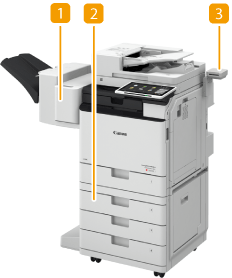 Para informações sobre a combinação de opções que podem ser instaladas na máquina, entre em contato com seu revendedor autorizado Canon local. Algumas das configurações podem não ser exibidas, dependendo da configuração do equipamento opcional instalado na máquina. |
