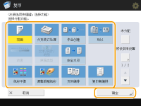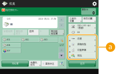 根据功能,位于“基本功能”屏幕上的设置项目的数量和所显示的位置会有所不同。 若将<未分配>设置为快捷键,将不会显示快捷键按钮。 以下是可注册的<选项>快捷键数量限值。 复印:5 传真:4 扫描和发送:2 |
