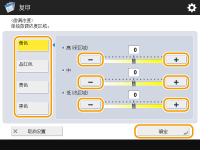 调整完成之后可以注册最多四个设置。色彩调整之后,按<恢复/注册> ,从<C1> 到 <C4>中选择一个按钮 按<注册> <是> <确定>。![]() 要调用已注册的设置,请按<恢复/注册>,选择一个按钮,然后按<确定>。 可以更改 <C1> 到 <C4>的按钮名称。选择要更改名称的按钮,按<重新命名>,然后输入新的名称。 要删除已注册的设置,选择按钮 ,然后按<删除> <是>。 |