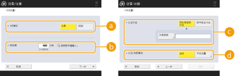 2 | 配置必要的设置。 ![]() <IKE模式>选择密钥交换协议的操作模式。如果操作模式设置为<主要>,安全性将因对IKE会话本身进行加密而得到增强,但与<挑战>(不执行加密)相比,会给通信带来更高的负荷。 <有效期>设置所生成的IKE SA的有效期。 <认证方法>选择以下所述的一种认证方法。