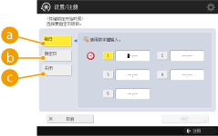 5 | 选择存储箱数量 指定每个设置,然后按<确定>。![]() <注册存储箱名称>为该存储箱注册名称。 <PIN>输入该存储箱的密码。 <初始化>初始化该存储箱。 <URL发送设置>如果存储箱中保存的文档可以通过电子邮件发送或在远程用户界面屏幕上进行查看,为该存储箱启用URL。