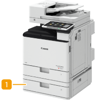 한 개의 용지 카세트를 추가할 수 있습니다. 용지 카세트 1에 지정된 것과 다른 크기의 용지를 적재할 수 있으며 저장 공간이 제공됩니다.