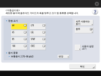 용지가 모두 삽입되면 용지 크기 및 종류를 지정하는 화면이 표시됩니다.