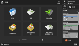 按 <首頁> 畫面及基本功能畫面顯示的 以便自訂畫面,例如重新排列按鈕或建立快速鍵。自訂觸控面板顯示幕![]() 您可以變更與畫面顯示有關的設定,例如開啟本機電源後立即顯示的畫面,以及是否對於剩餘紙張和碳粉顯示訊息。<顯示設定> 您可以設定經過一段時間不操作將顯示的畫面。<自動重設後的功能> |