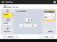 如果 <原稿尺寸> 中顯示的尺寸不同於原稿尺寸,請按下 <變更> 選擇尺寸。您只能掃描觸控面板顯示幕上顯示的原稿尺寸。