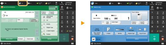 You can create a shortcut button for the functions on the <Home> screen. Use this button to access a different function without returning to the <Home> screen. To create a shortcut, log in with administrator privileges.