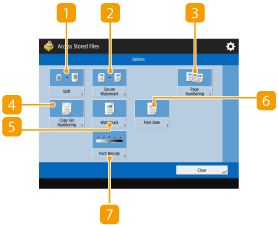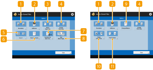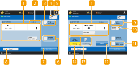 When you press <Access Stored Files> on the <Home> screen, and then press <Mail Box>, <Advanced Space>, <Network>, or <Memory Media> to print files, the following setting screen is displayed.