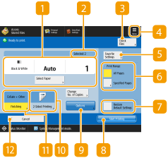 Specify this setting when you select a file with two pages or more. To print all pages of a file, press <All Pages>, or to specify the pages to print, press <Specified Pages> and enter the range of pages to print.